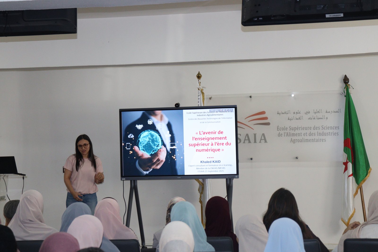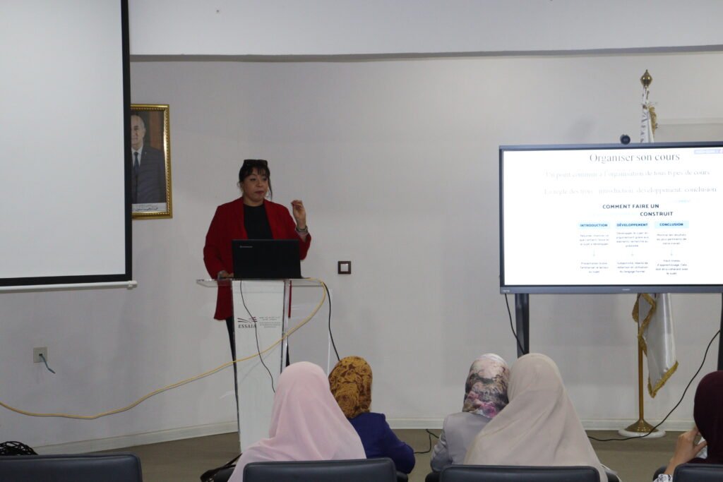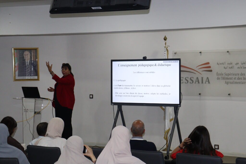 La deuxième, assurée par Dr. HASSAN Anissa, enseignante des matières transversales à l’école et experte en enseignement à distance, qui a partagé son expérience et ses bonnes pratiques pédagogiques.