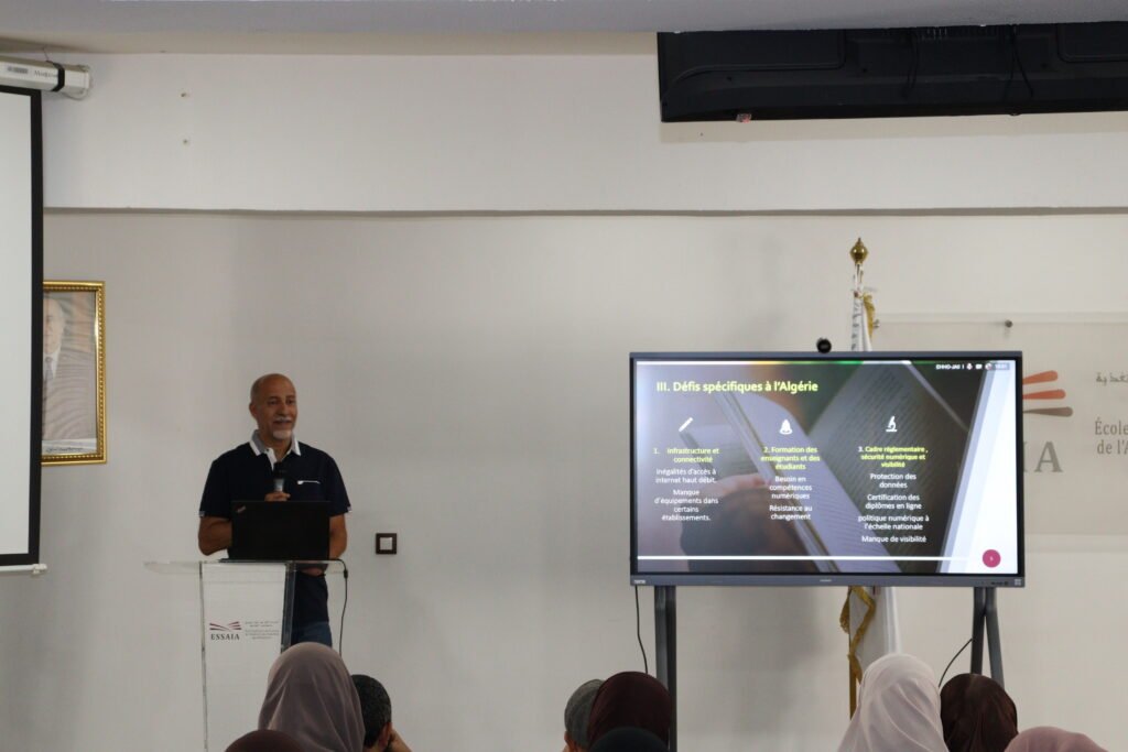 La première, animée par Pr. KAID Khaled, représentant et membre de la Commission nationale de l’enseignement à distance, qui a apporté un éclairage précieux sur les orientations et les perspectives nationales dans ce domaine.